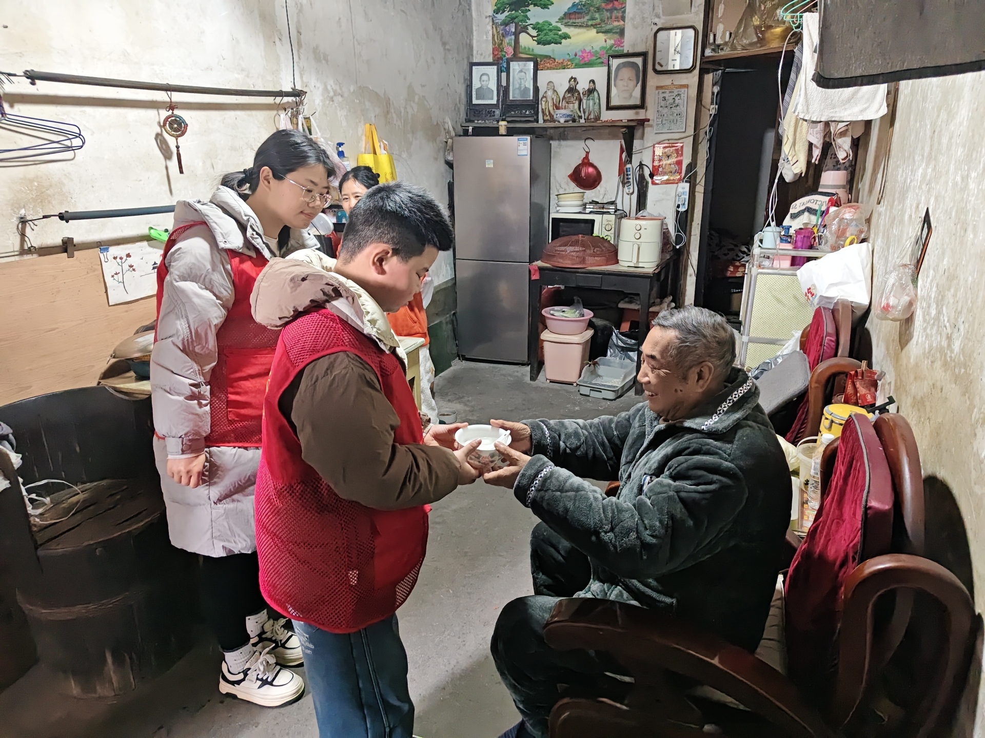 社区工作人员带着刚煮好的汤圆上门走访慰问辖区独居老人、残疾人、低保户及节日期间坚守岗位的环卫工人等一线工作者。每到一户,工作人员都与居民亲切交谈,询问身体状况和生活需求,叮嘱注意安全,将社区的关怀与温暖送到心坎上。